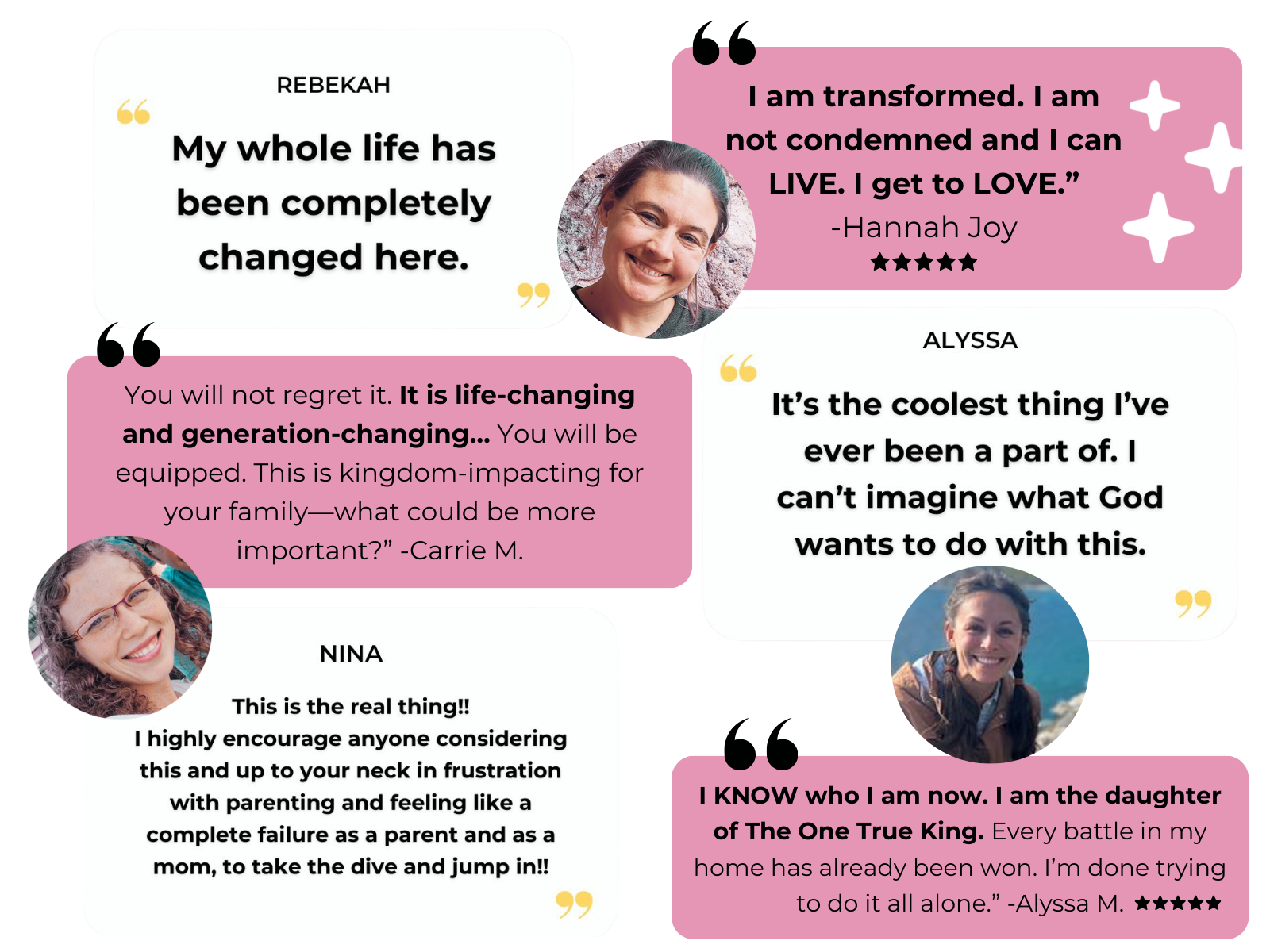 Imagine waking up to a tidy home and enjoying a quiet time, uninterrupted - because your kids respect what you need and work as a team. You can do that in just one month in the program. The possibilities after that are endless - women come for relationship breakthrough and stay to be transformed inside and out by Christ. So what are you waiting for? Click the button.